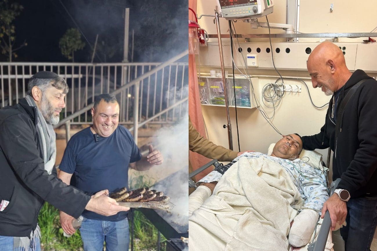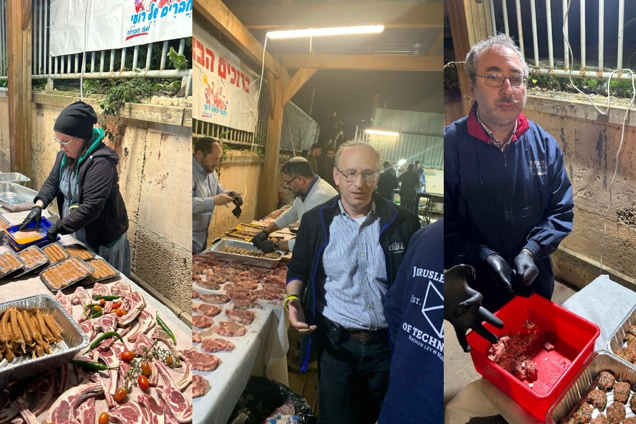 We volunteered on many different fronts. We packed and moved boxes at a second-hand thrift store that provides clothes and goods to displaced families. We sponsored and volunteered at a carnival for children who experienced the horrors of October 7th. We sorted frozen vegetables at a food bank that serves thousands of Israelis weekly. We sponsored a BBQ and served food to chayalim who were returning from combat in Gaza. And we visited and delivered gifts to injured soldiers in the hospital.